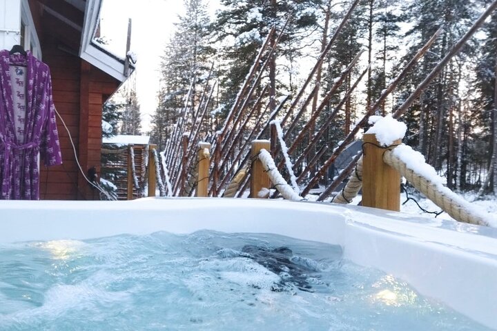 A great opportunity to spend a full day in a small group. To combine a trip to nature, to the famous and unique frozen Korouoma waterfalls and relax in SPA in private sauna. You will walk through the snowy forest and see wonderful unique landscape. What may be better after a trip the cold forest to warm up in a traditional Finnish wood-burning sauna and hot outside jacuzzi?